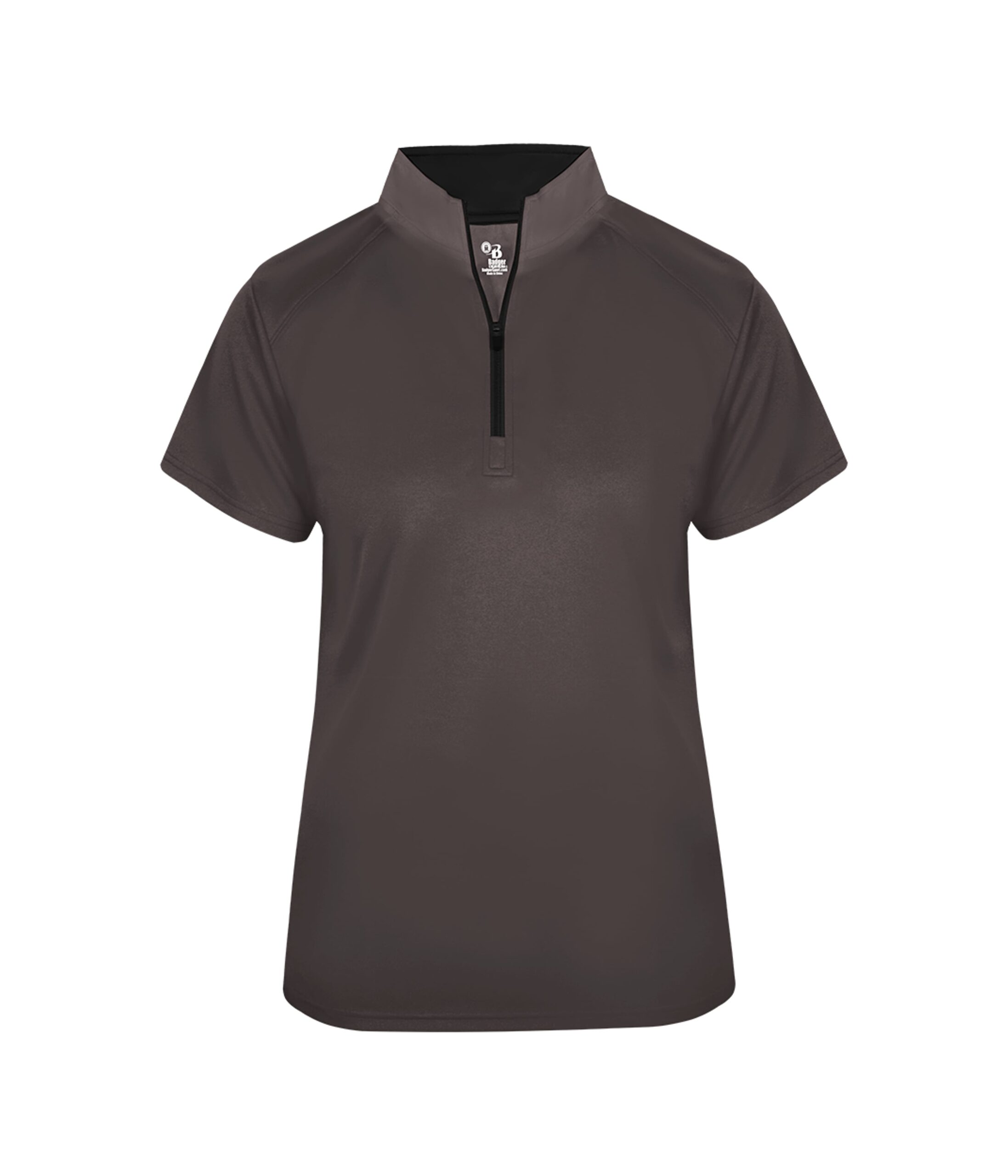 * 100% Polyester moisture management/odor protection performance fabric * Badger sport paneled shoulder for maximum movement * Contrast zipper and inner collar * Double-needle hem * Self-fabric collar with 8" locking zipper * Badger heat seal logo on left sleeve