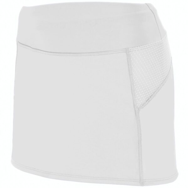 Lightweight 90% polyester/10% spandex knit skirt * Graphite Heavyweight 90% polyester/10% spandex knit inner short * 94% polyester/6% spandex maze mesh yoke * Wicks moisture * Odor resistant * Tag-free label * Low rise, wide flat waistband for secure fit and comfort * Hidden possession pocket in waistband * Flatlock stitching provides comfort and helps prevent chafing * Longer length at back of skort for added coverage