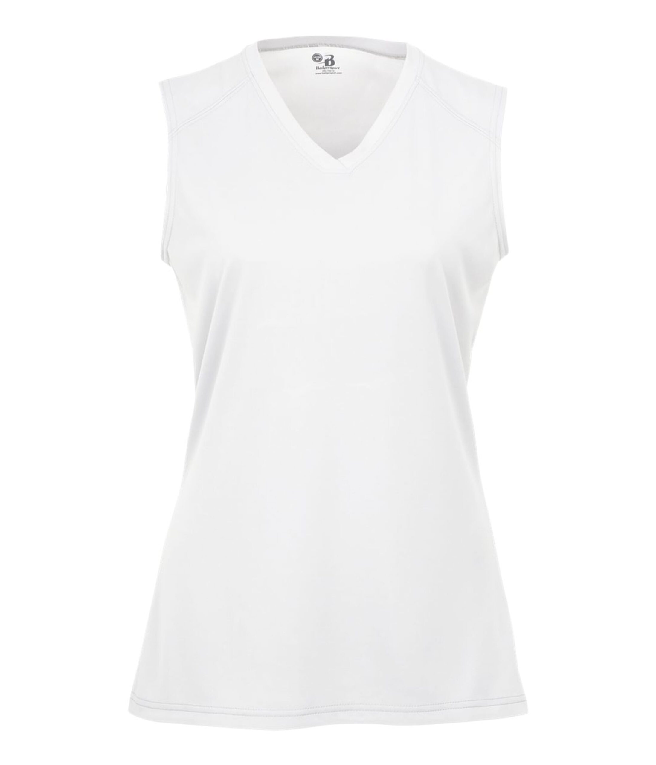 * 100% Polyester moisture management/odor protection performance fabric * Badger sport paneled shoulder for maximum movement * Self-fabric lap v-neck * Double-needle hem * Badger heat seal logo on center back