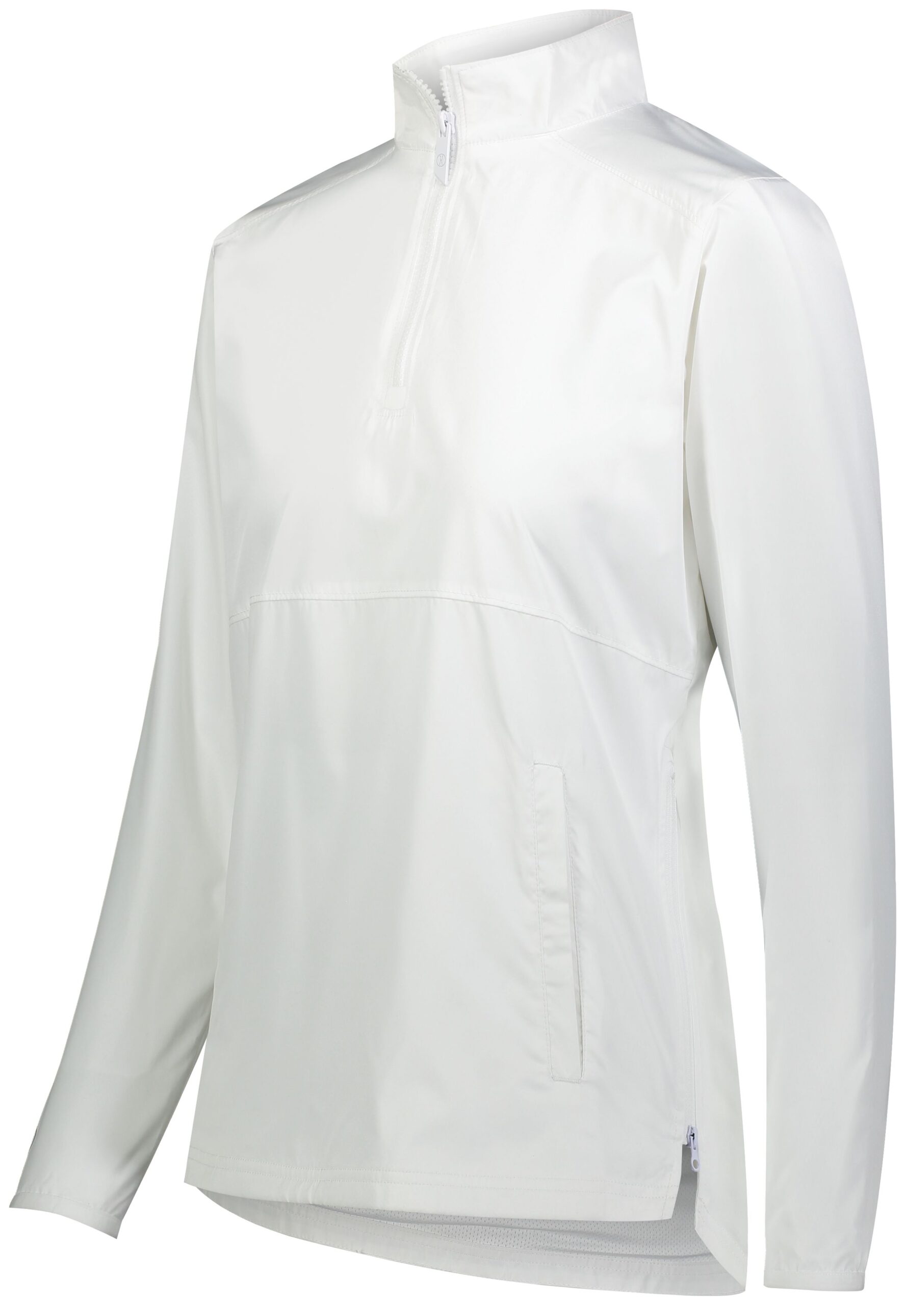 * Micron™ polyester is a lightweight, wind/water-resistant fabric * Embossed inserts for subtle textured pattern * Micromesh lined nylon body * Taffeta lined sleeves * Ladies’ fit * Woven label * Quarter zip pullover style with zipper garage * Set-in sleeves * Front pockets * Spandex bound cuffs * Side seam zipper for easy on/off * Dropped tail with side vents