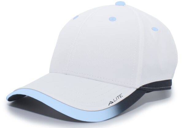 * 100% polyester * Breathable * Wicks moisture * Mid-profile, structured crown * Black undervisor * Contrast eyelets * Pro-stitched finish * Contrast gradient binding * Hook-and-loop adjustable
