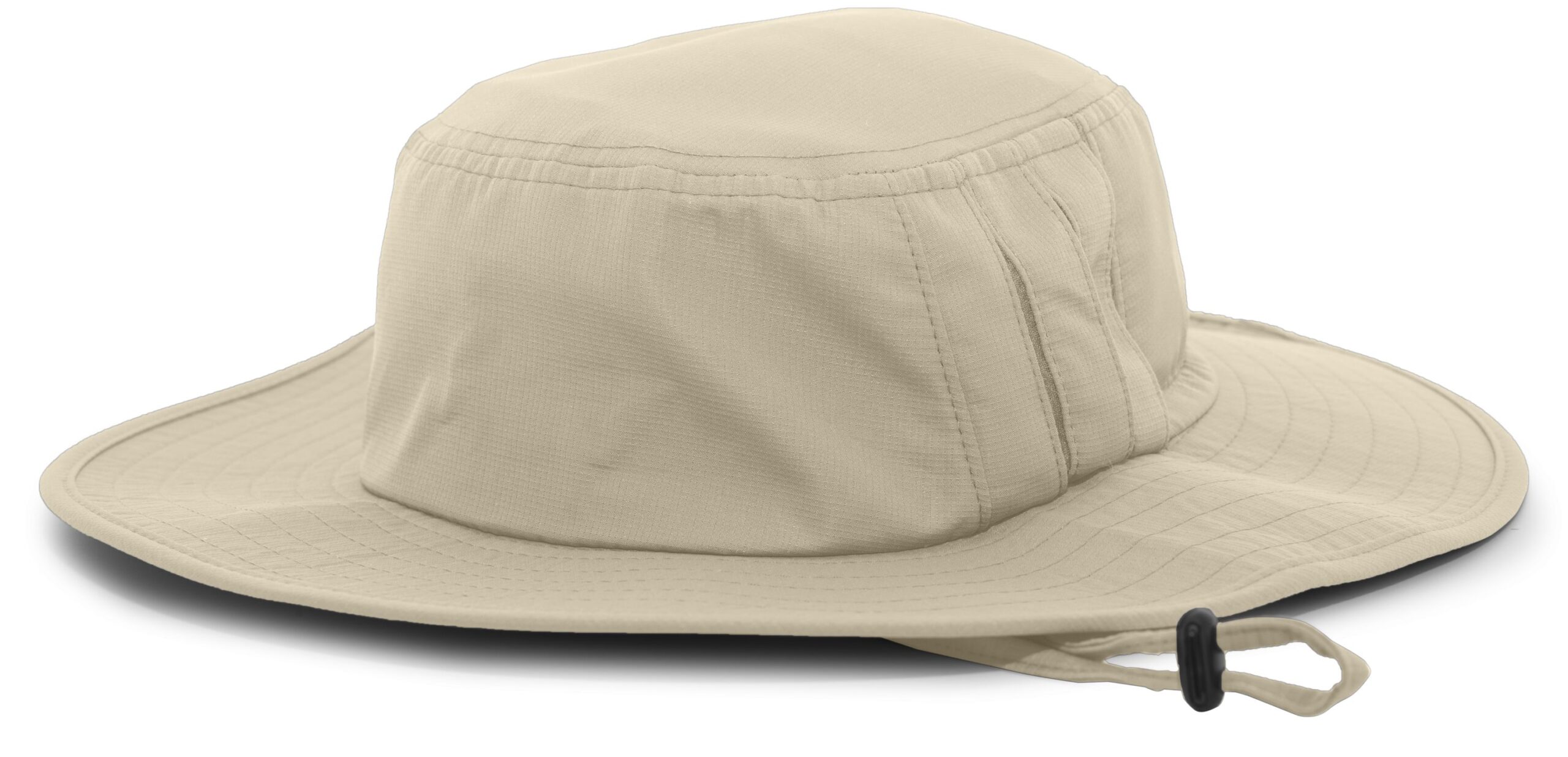 * 100% polyester * Extra breathable vent * Wicks moisture * Gill vents * 3-inch wide brim * Drawcord adjustable