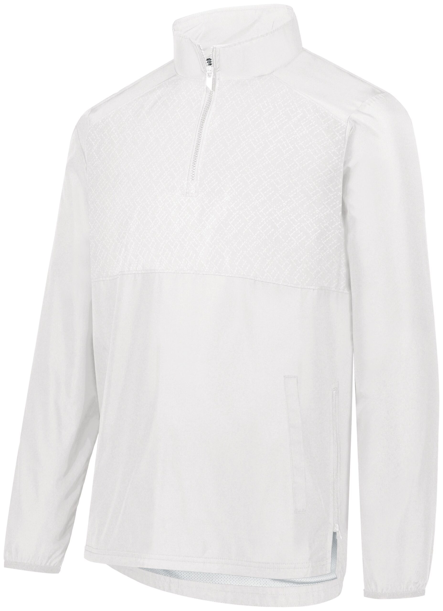 * Micron™ polyester is a lightweight, wind/water-resistant fabric * Embossed inserts for subtle textured pattern * Micromesh lined nylon body * Taffeta lined sleeves * Woven label * Quarter zip pullover style with zipper garage * Set-in sleeves * Front pockets * Spandex bound cuffs * Side seam zipper for easy on/off * Dropped tail with side vents