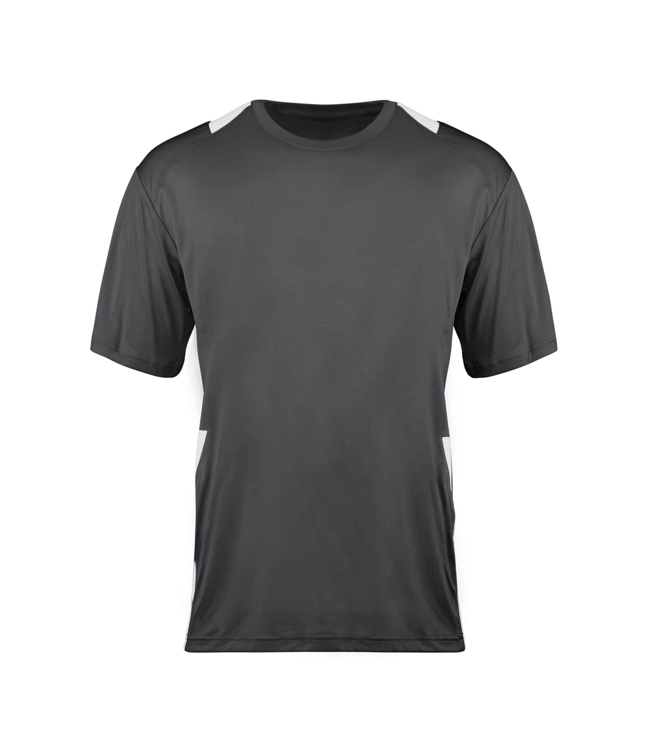 * 100% Soft Polyester moisture management/odor protection performance fabric * Superior interlock fabric for comfort * UPF 50+ sun protection from UVA and UVB * Contrast panel inserts * Badger sport shoulder for maximum movement * Self-fabric collar * Double-needle hem * Badger heat seal logo on left sleeve.