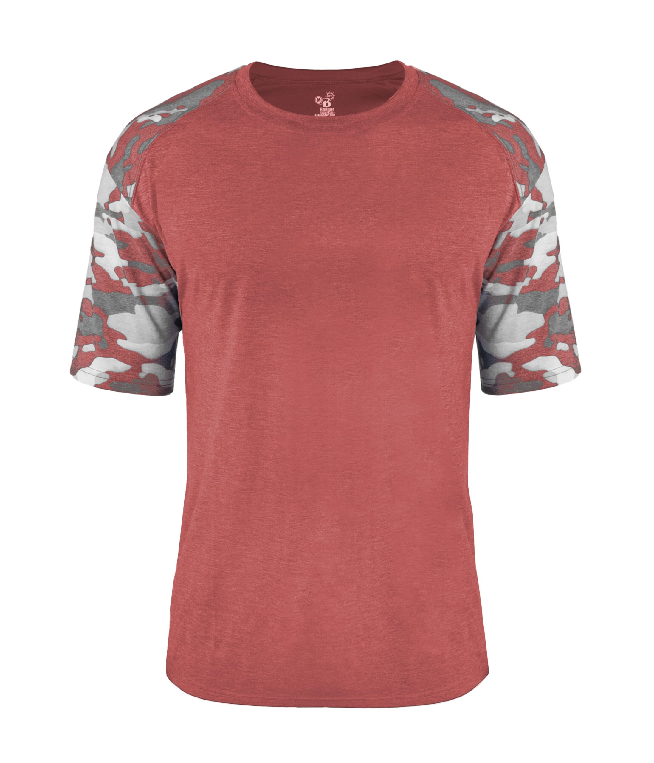 * 65% Polyester/25% Mercerized Cotton/10% Rayon moisture management/odor protection performance fabric * Sublimated sport shoulders and sleeves * Badger sport paneled shoulder for maximum movement * Self-fabric collar * Double-needle hem * Badger heat seal logo on left sleeve