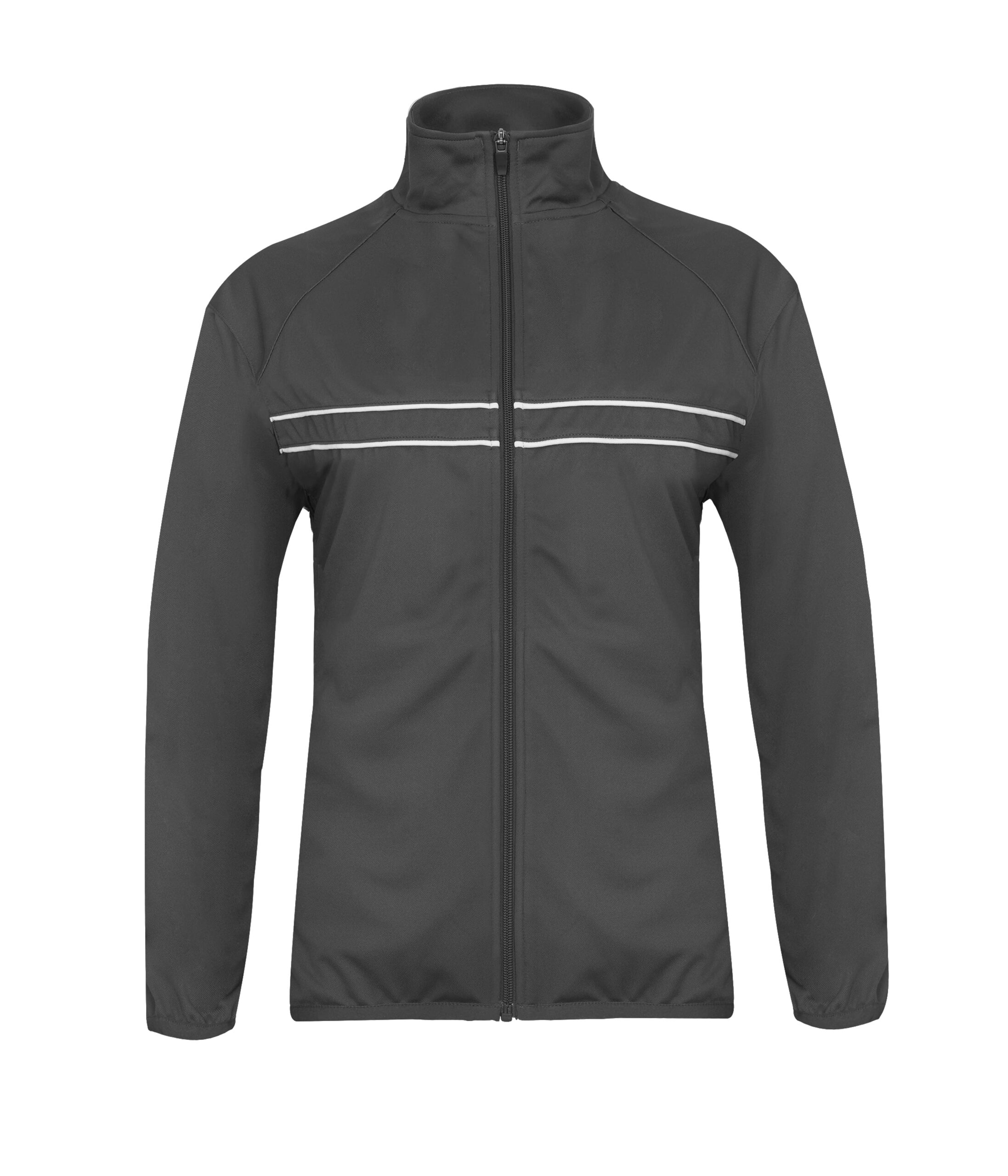 * 100% Polyester fabric * Self-fabric hood and full length locking zipper * Contrasting piping on front body * Two front zipper pockets with headset opening * Soft elastic binding on sleeve and bottom hem * Drop tail hem * Badger "B" woven loop label on bottom hem
